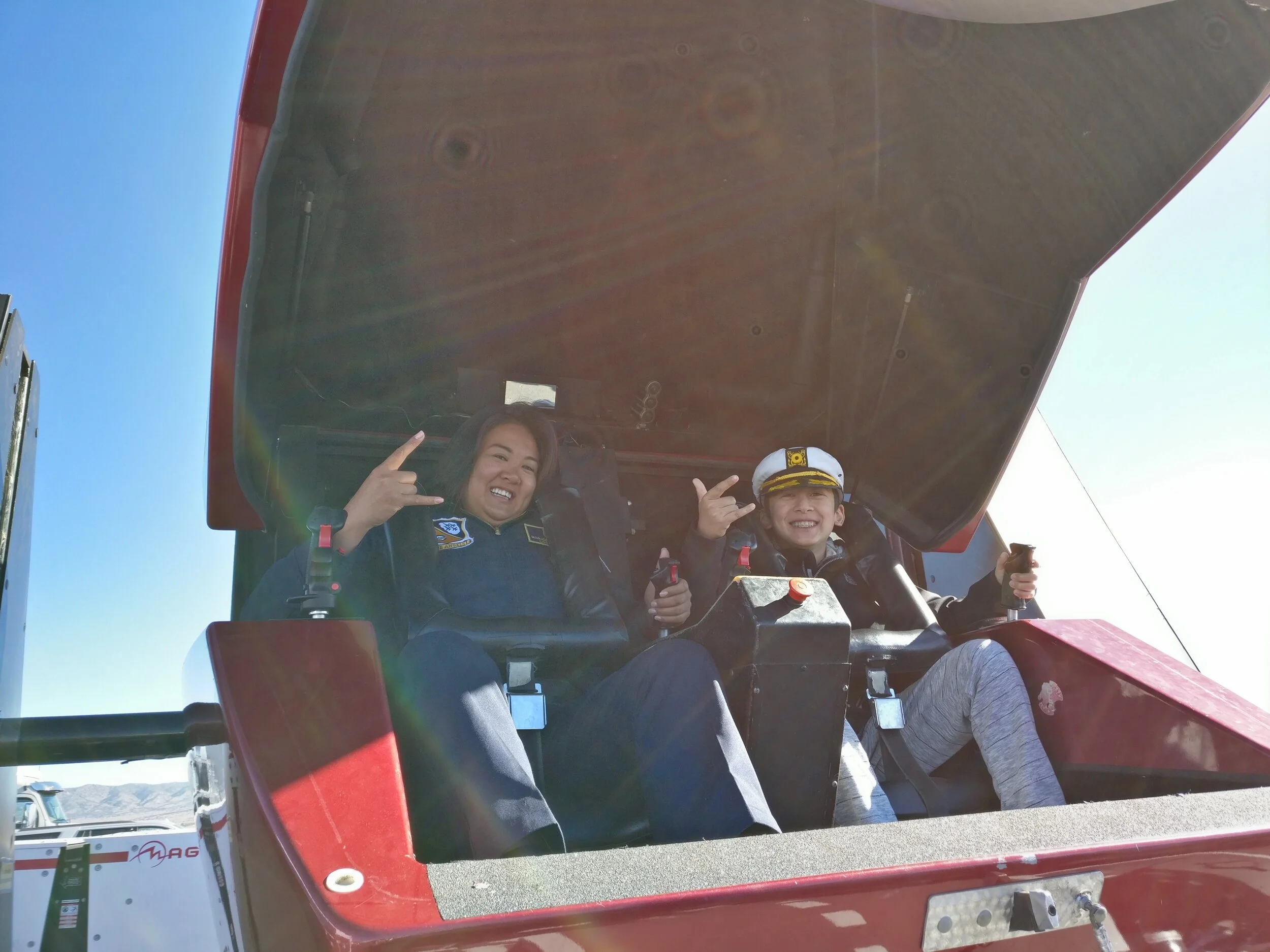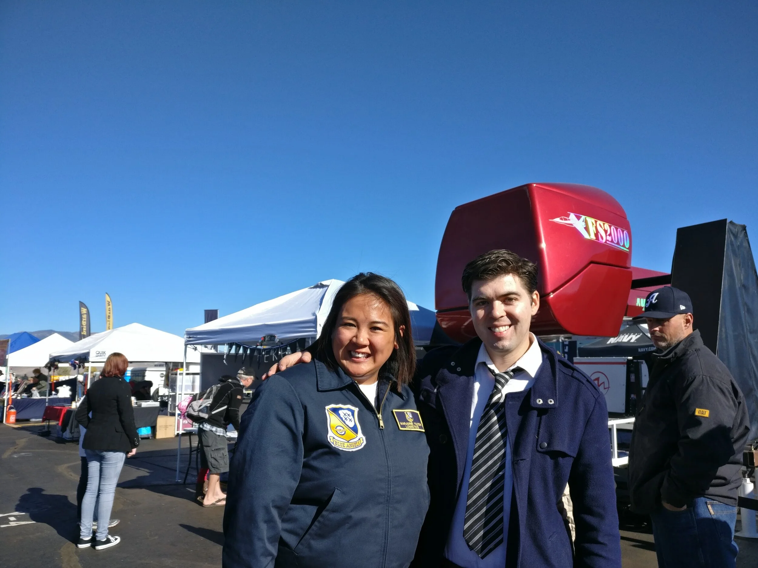 Pictured here w/ Marjorie Tilton, manager of logistics for Blue Angels who tried my F/A-18 simulation alongside her cousin.